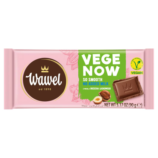 Smak czekolady mlecznej bez dodatku mleka? TAK JEST! Delikatny aksamitny smak i receptura oparta jedynie na składnikach roślinnych - to wszystko znajdziesz w nowej wegańskiej tabliczce VEGE NOW marki Wawel z międzynarodowym certyfikatem V-Label. Swoją aksamitną strukturę i delikatny smak zawdzięcza paście z orzecha laskowego.